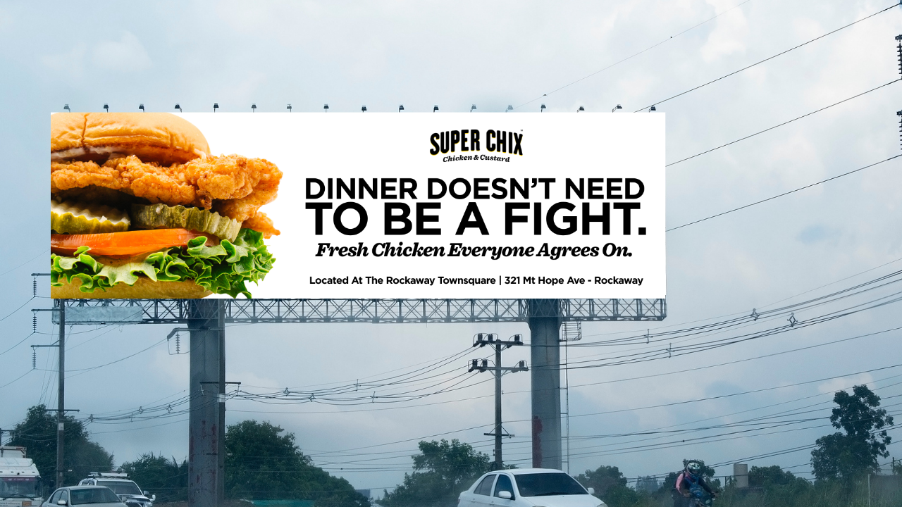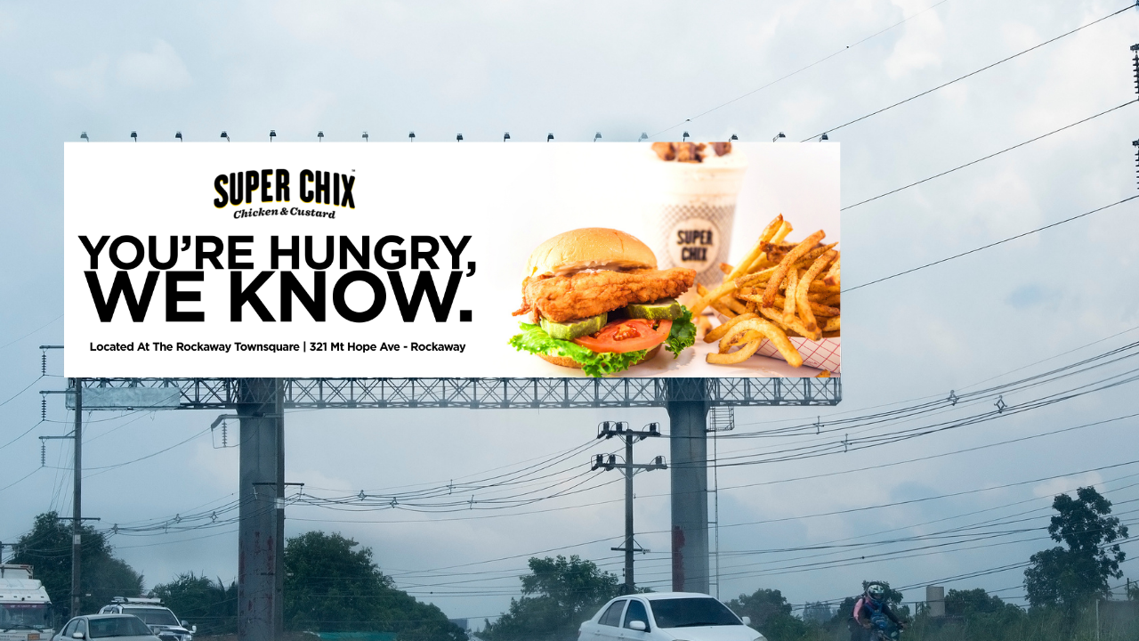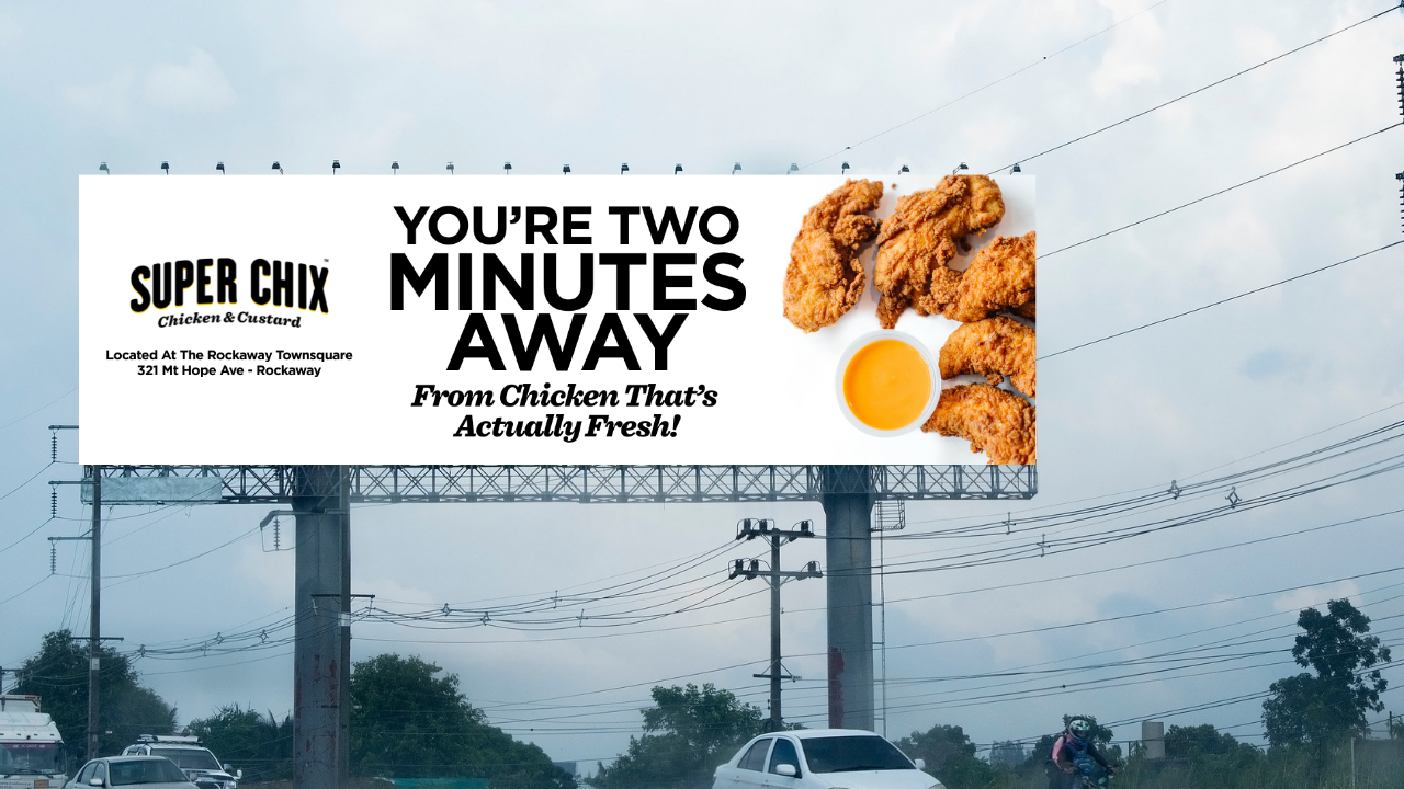 Brand To Table helped SuperChix - Rockaway design and execute a hyper local billboard campaign on Route 15 in Wharton NJ that focused on conversational messaging, geographic clarity, and simple decision making. The strategy was not about brand awareness. It was about getting drivers within two miles of the restaurant to make a quick choice and turn into the parking lot.